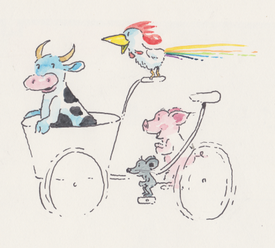 Der grafischen Anregung von Helme Heine folgend wollen nicht unbedingt mit dem Auto anreisen wollen, sondern mit dem Fahrrad kommen.